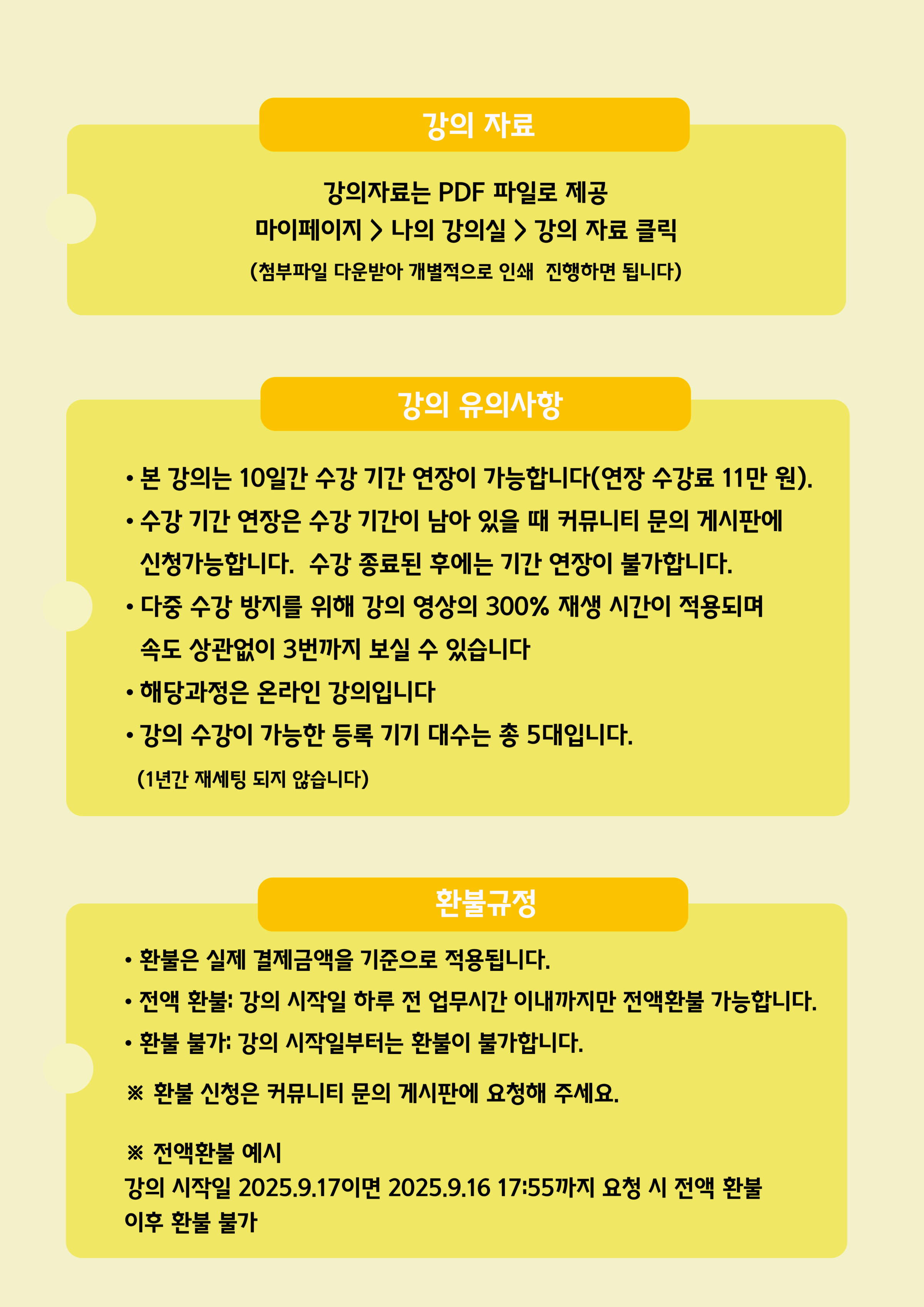 ⦁ 본 강의는 10일간 수강 기간 연장이 가능합니다.