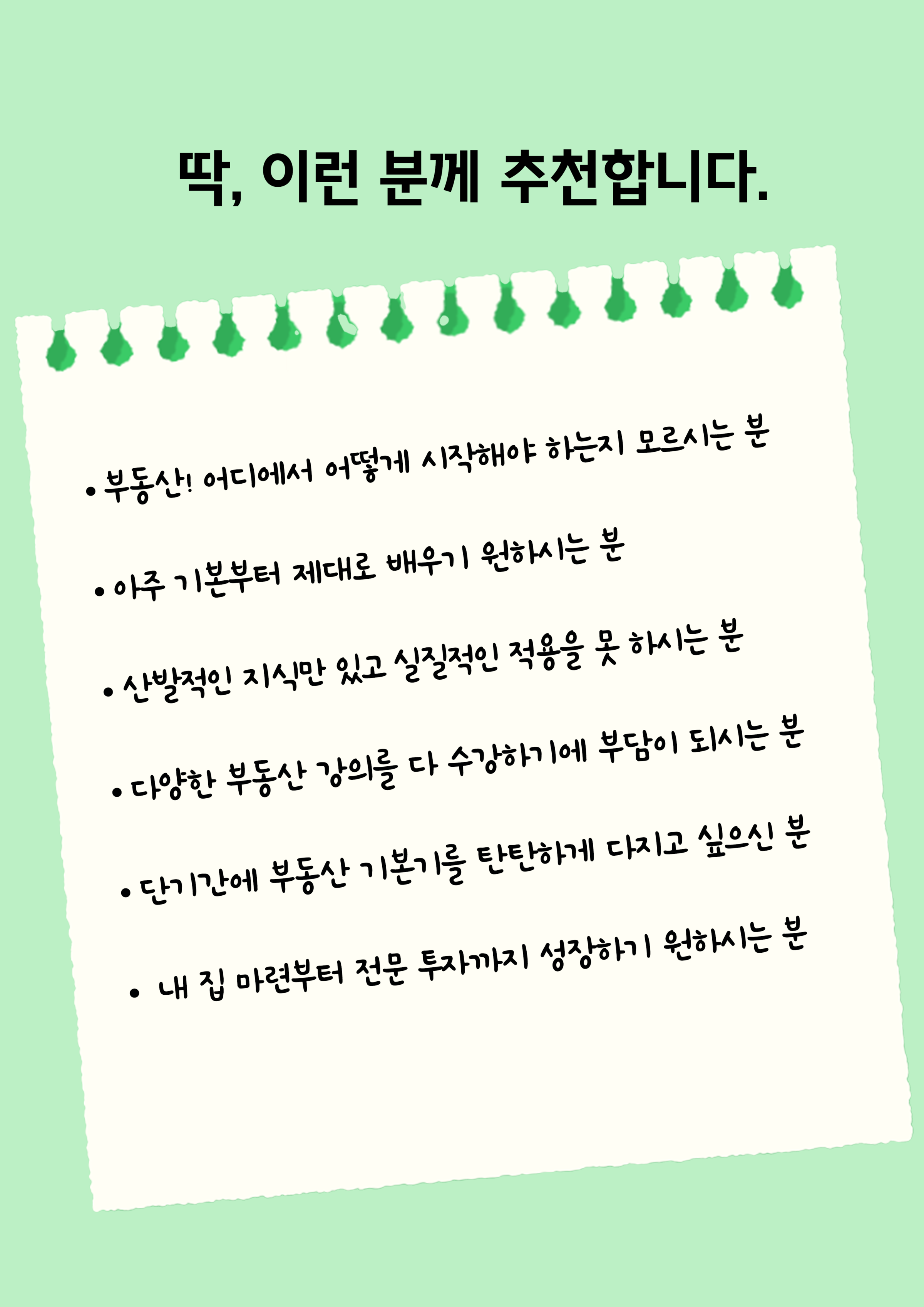 ⦁ 단기간에 부동산 기본기를 탄탄하게 다지고 싶으신 분.