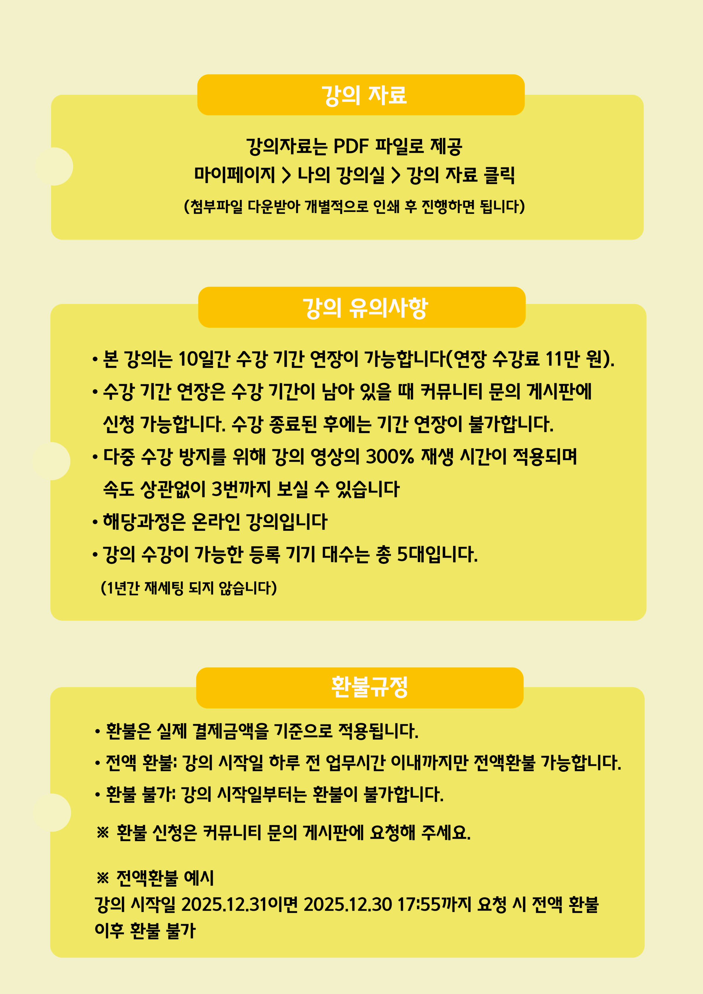 * 본 강의는 10일간 수강 기간 연장이 가능합니다(연장 수강료 11만 원).