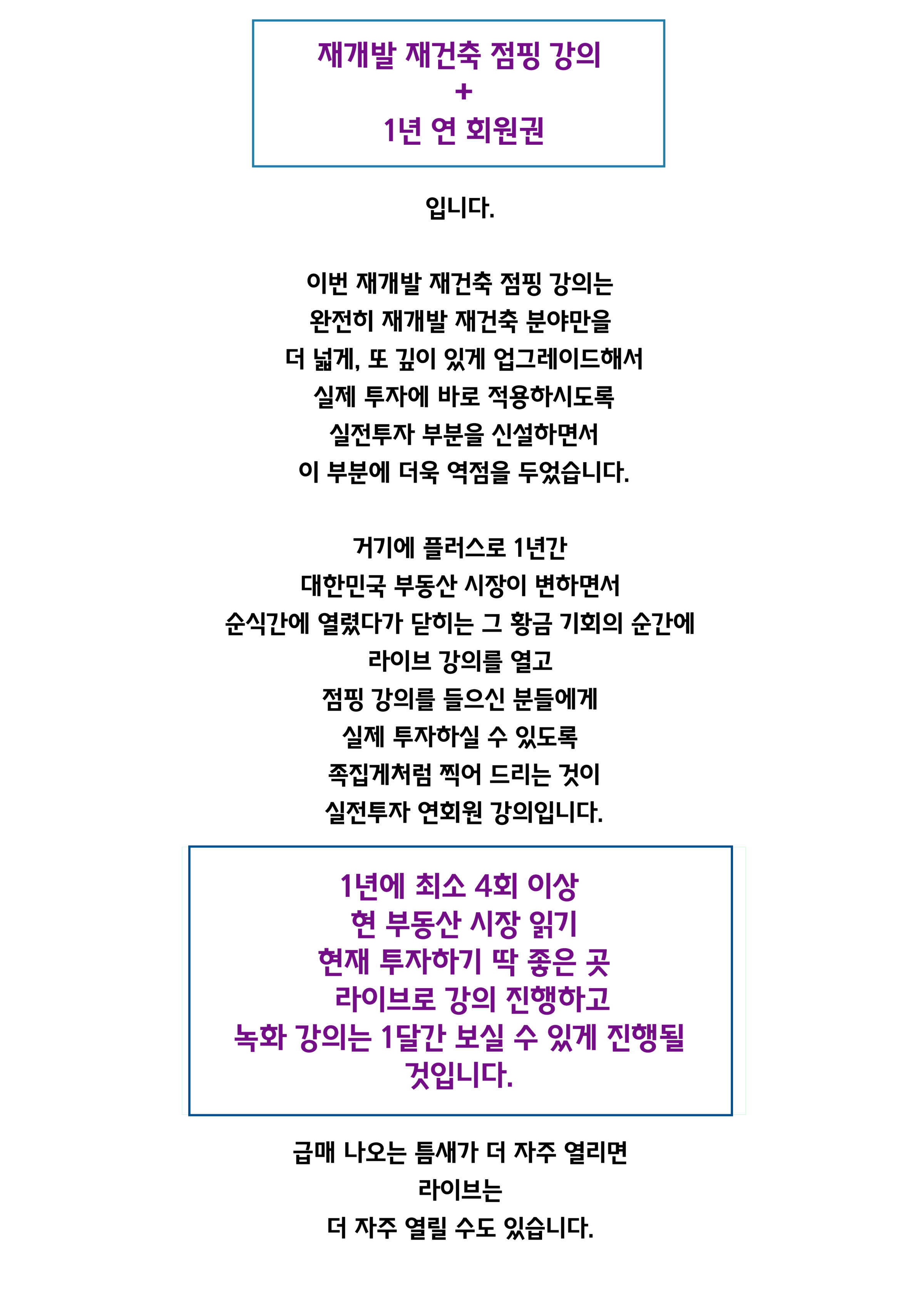 재개발 재건축 점핑 투자법 수강생에게 할인 혜택 드립니다.