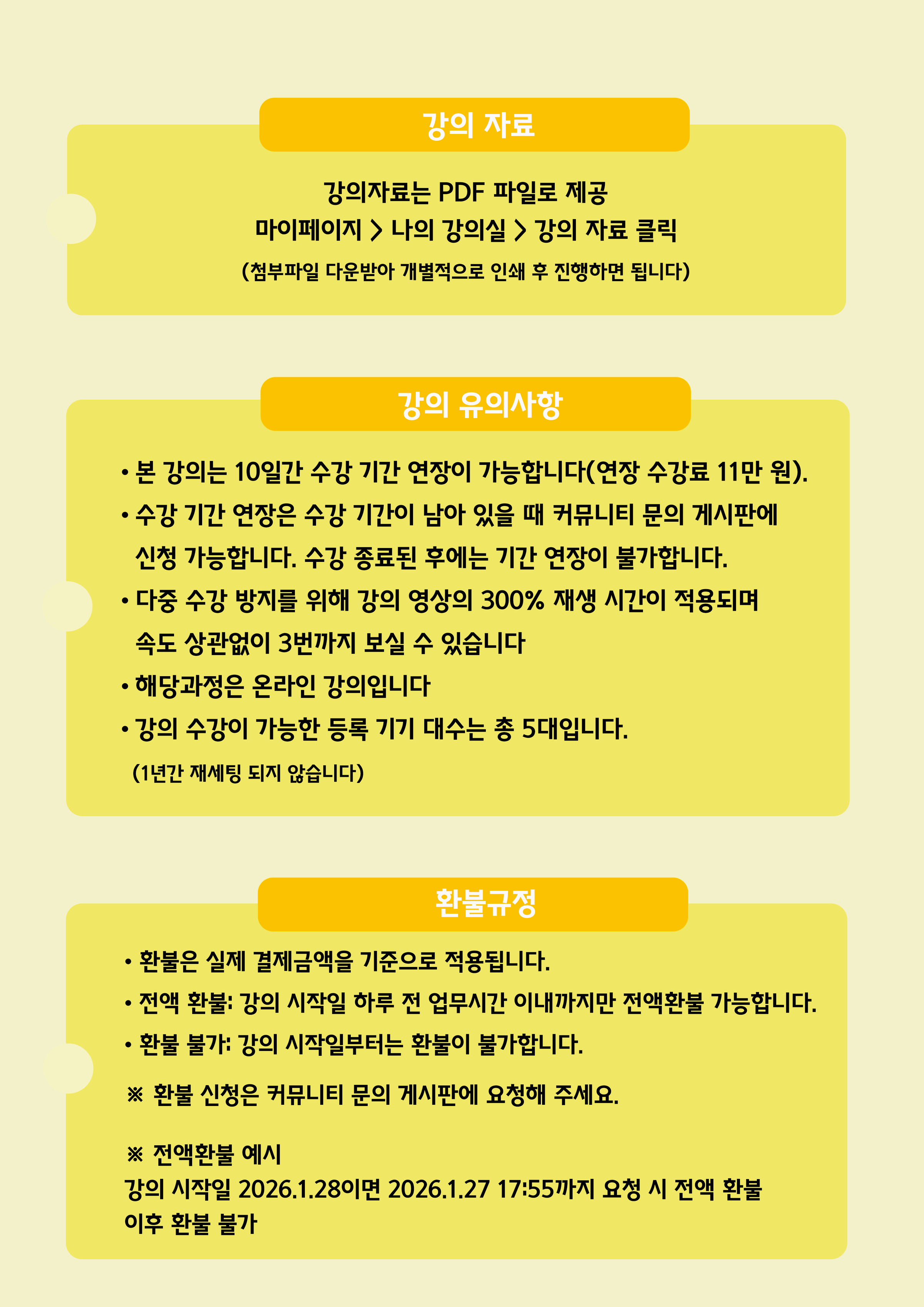 강의 시작일 2026.1.28이면 2026.1.27. 17:55까지 요청 시 전액 환불